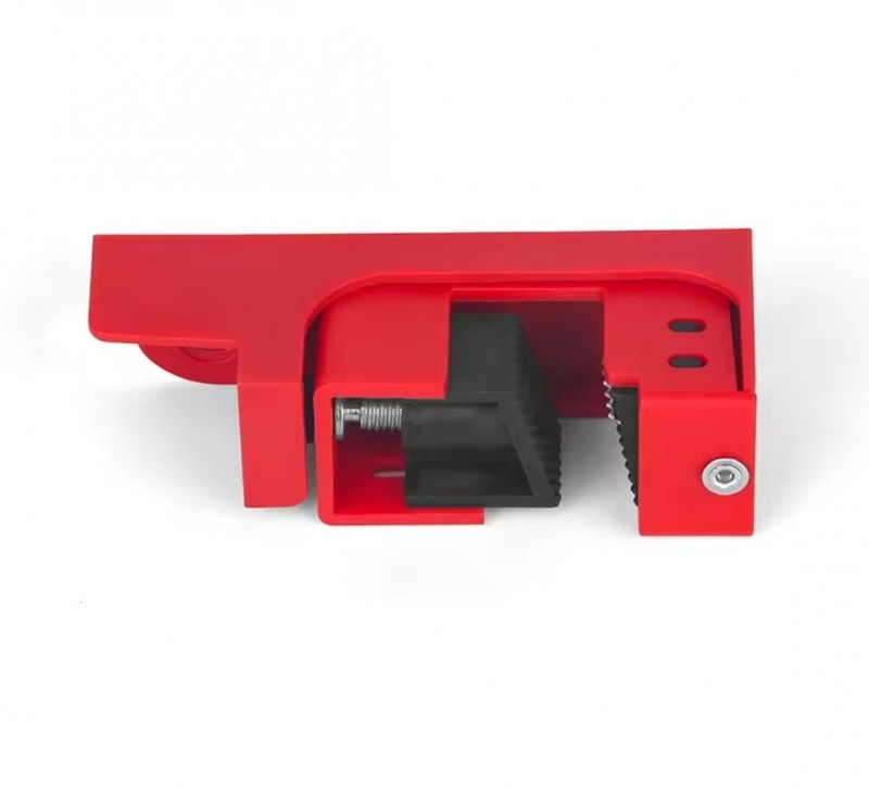 Блокиратор широких автоматических выключателей типа Grip Tight BD-D18-1, подходит для большинства типов электроавтоматов большого размера. Фиксация происходит за счет рифленных зажимов из пластика, регулируемых колесиком с накаткой. Подходит для навешивания одного замка, с диаметром дужки не более 7,5 мм.